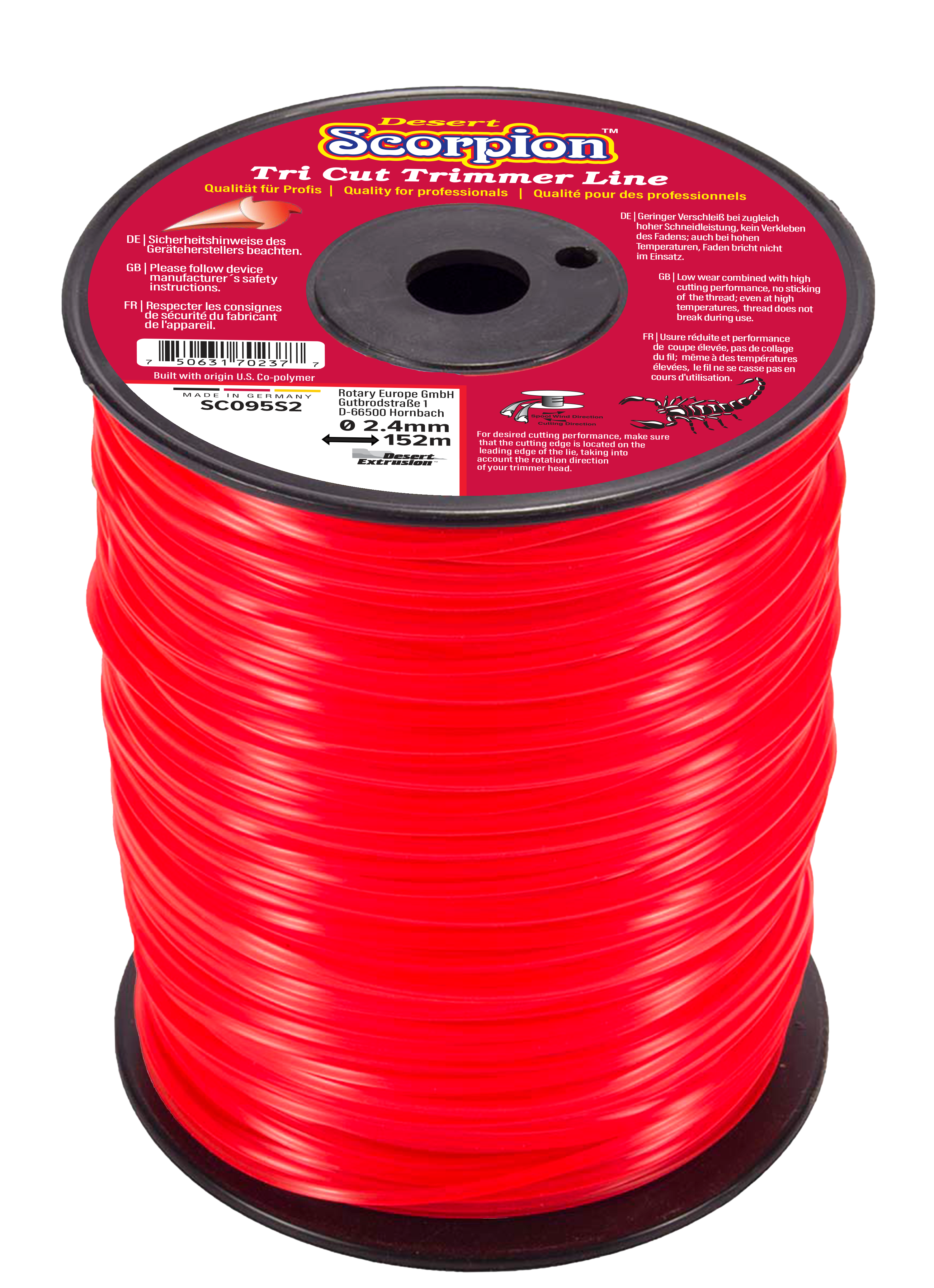 SCORPION .095"/2.4MM 2LB SPOOL - TRI CUT SHAPE LINE